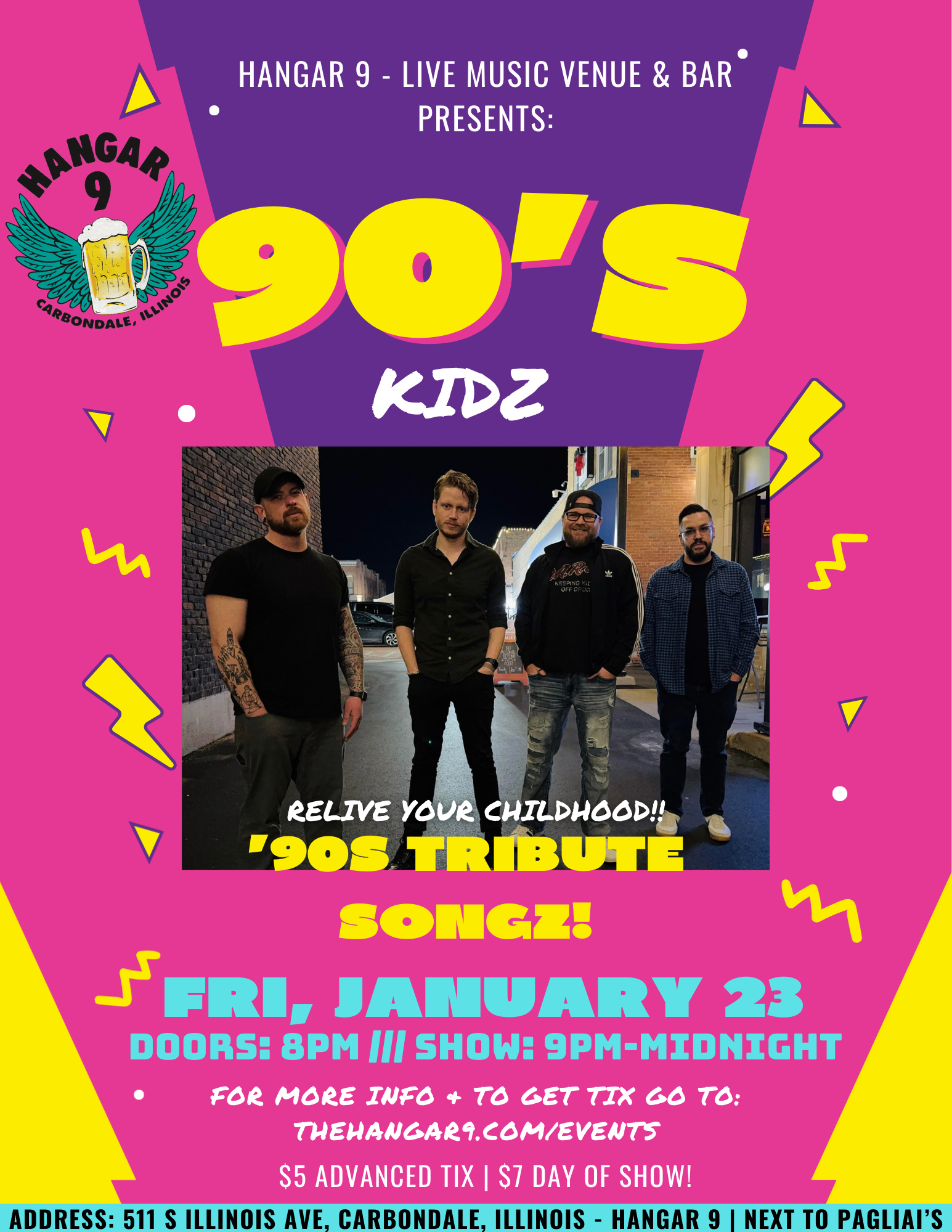 90’s Kidz bring all the hits, throwbacks, and feel-good nostalgia of the 1990s to Hangar 9 for a high-energy Friday night show in Carbondale.