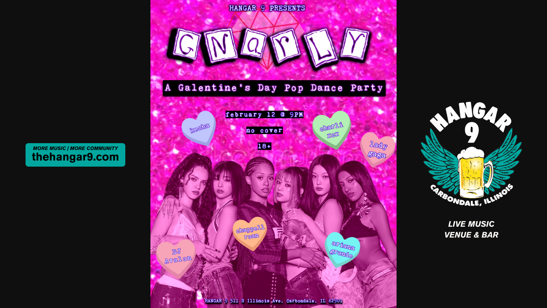 Grab your girls and get ready for a night of unapologetic pop energy. GNARLY is Hangar 9’s Galentine’s Day dance party — all things fun, flirty, and loud in the best way.