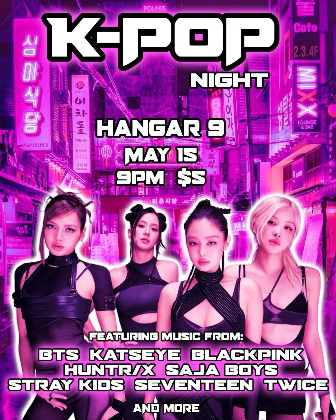 K-Pop Night - $5 Cover Friday, May 15, 2026 9:00 PM Saturday, May 16, 2026 2:00 AM Hangar 9 511 South Illinois Avenue Carbondale, IL, 62901 United States (map) Google Calendar ICS
